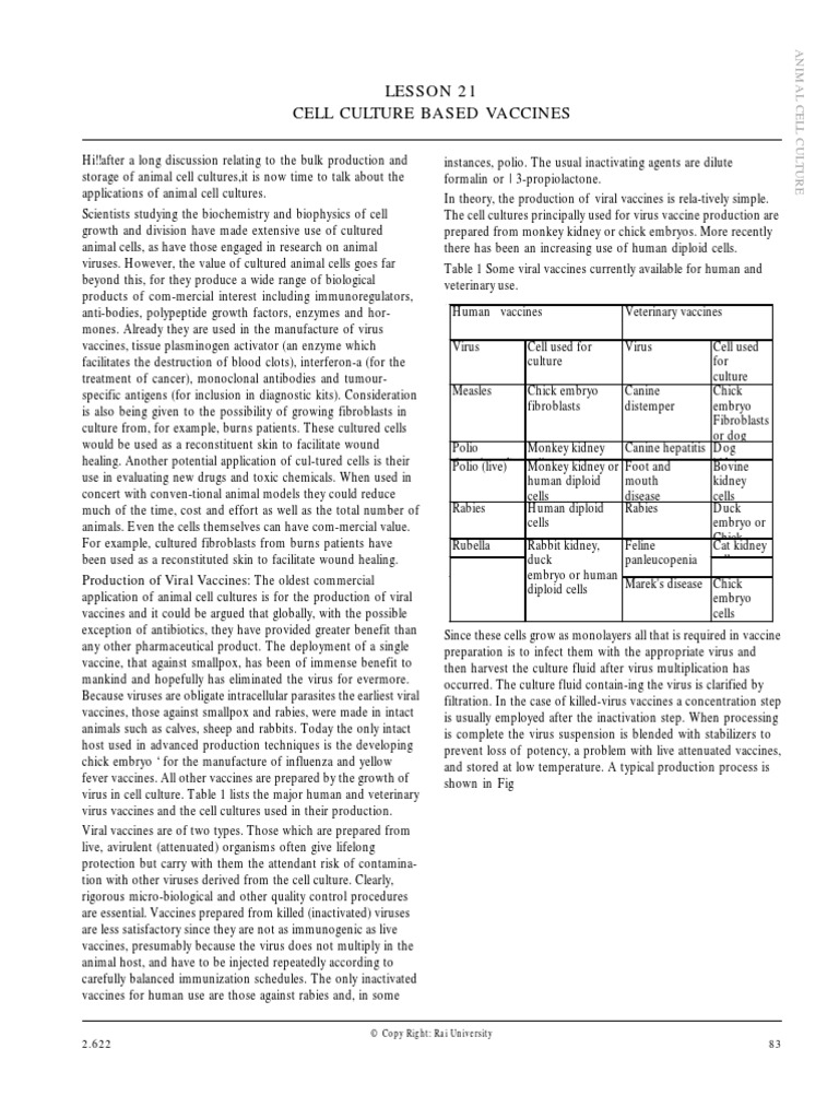 Maybe you would like to learn more about one of these? Check spelling or type a new query. Animal cell culture based vaccines. We did not find results for: